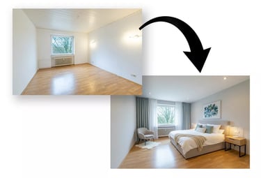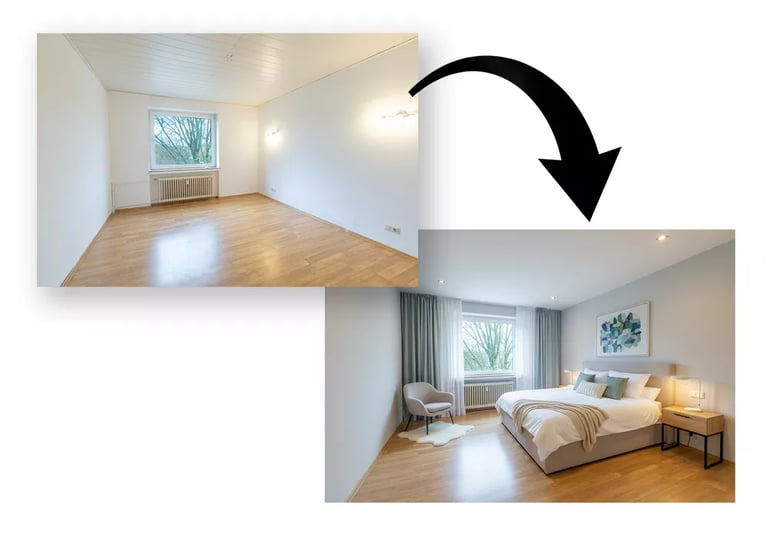 Leerstehende Räume digital möbliert und eingerichtet – so können Interessenten sich vom ersten Bild an vorstellen, wie sie dort leben würden.